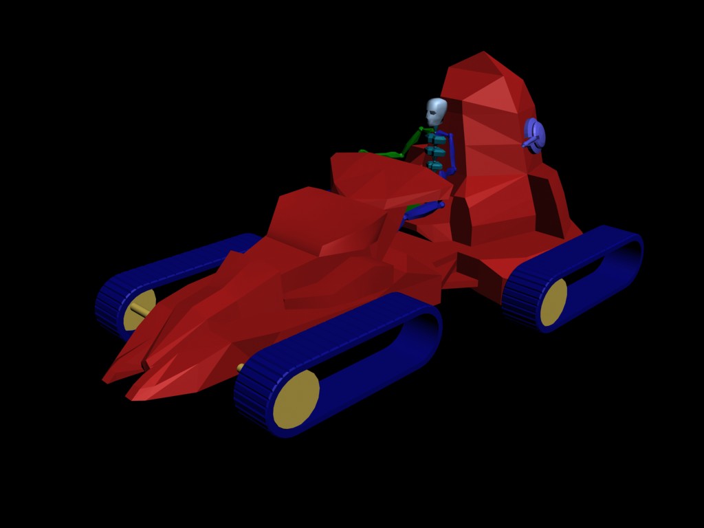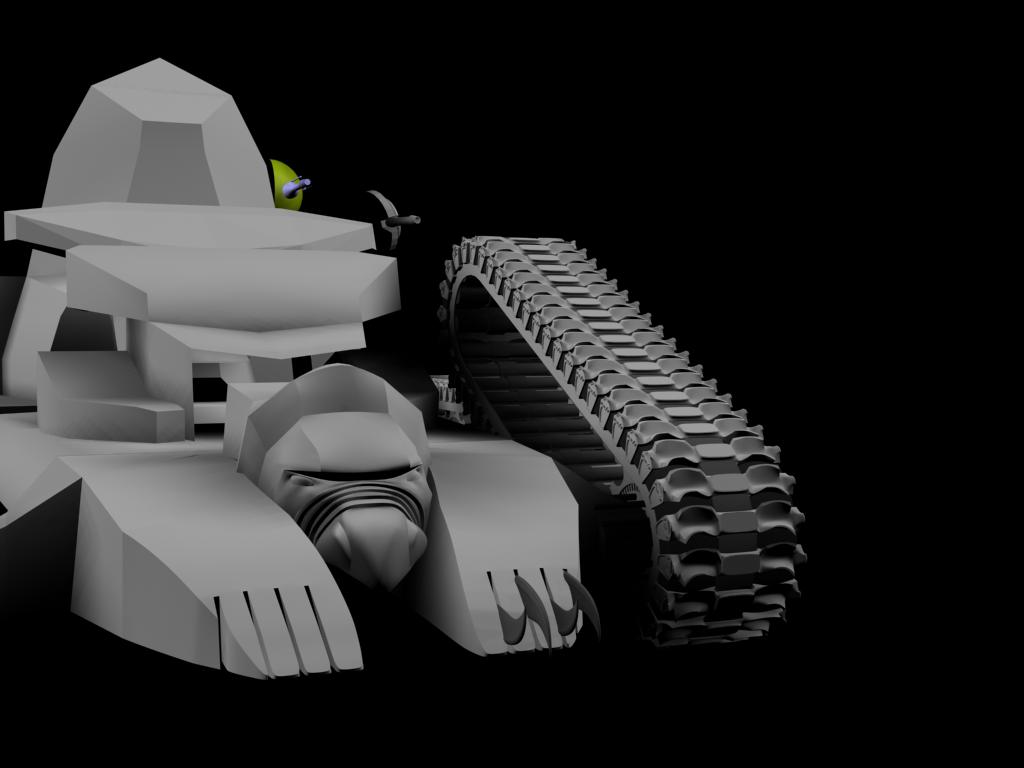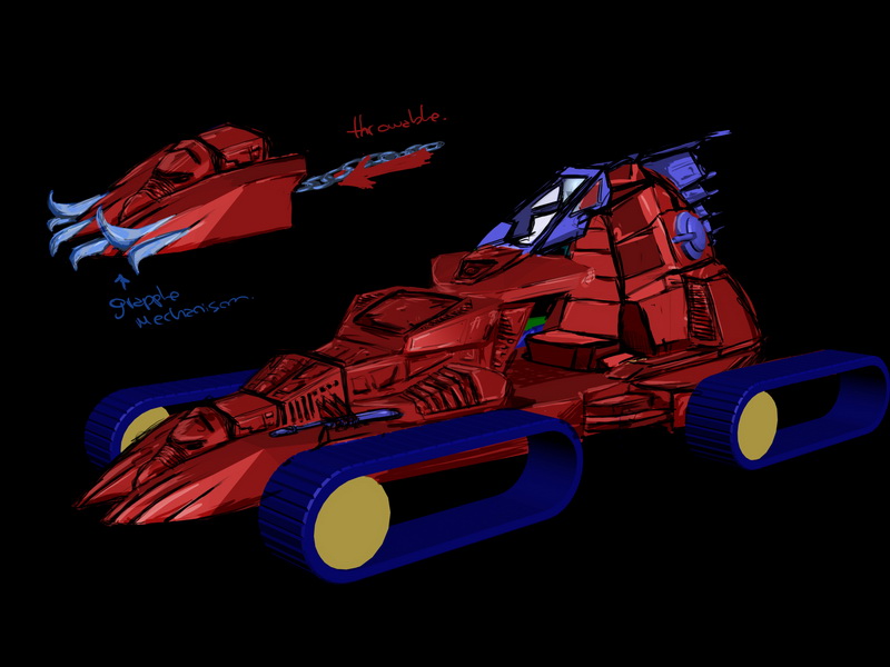 El vehículo está pensado como el original, como arma de ataque. La idea es que el original es solo tanque, en este caso tenía pensado implementarlo como un arma más ágil y con la posibilidad de poder volar. Así este vehículo puede desmontarse y convertirse en una nave similar al Wind Rider. Como el atak track es el vehículo exclusivo de he-man mi intención es que tenga referencias directas a su vehículo principal (Battle Cat) y a quien le concedió los poderes originalmente (sorceress) quien utiliza su forma de águila (zoar) para viajar fuera del castillo grey Skull.