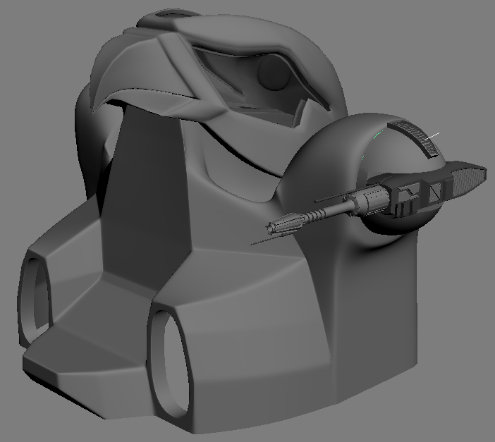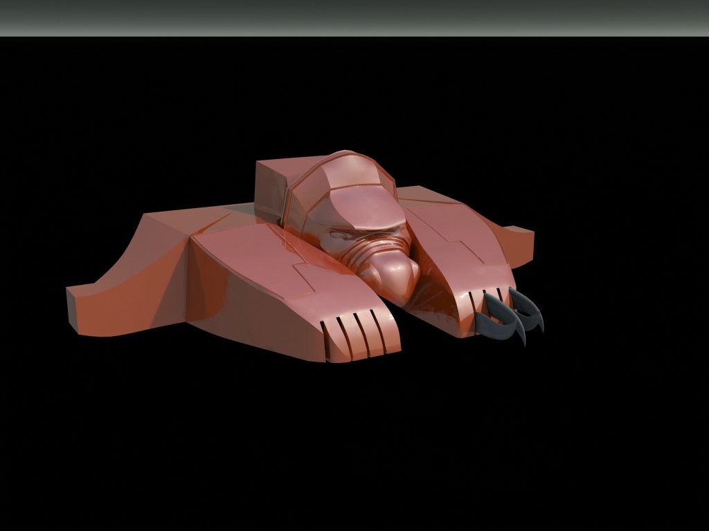 Hice unos ajustes en la sección trasera y agregue una cabina, el asunto de la cabina como en el boceto del primer mensaje, aunque está vez la idea es que está cabina tenga la forma de zoar que es el halcón en el que se transformaba sorceress para salir del castillo Grayskull.