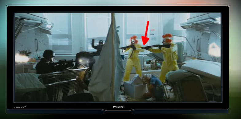 No sé si es cosa mía o qué, pero en el plano de la imagen que adjunto, fijándose bien en la escopeta que señalé, parece que se nota que tiembla un poco.