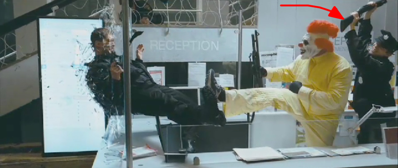 Y la otra cuestión es que el loop, aunque en el video nos lo pongan con la cara del policía gritando, termina y empieza en el plano detalle de la máscara al lado de la mano de ese mismo policía. Fijándose un poco se puede notar el Morph antes de que la cámara se levante y enfoque la cara del policía, otra prueba de que el video completo fue grabado en varias partes diferentes y luego compuesto para parecer que todo es una misma secuencia, menudo curro, es impresionante ¿eh?