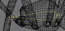 Now the IK Solver. Go into pose-mode [Control-tab]. Select one of the new Bones you just extruded then the last bone from the leg you extruded the new bone from and press [Control-i] -> todo selected bone. This Will add an IK Solver constraint todo the legs last bone targeting the new bone you just extruded. If you try todo move the target now, you Will notice the entire body is moving and the orange dotted line go todo the root bone. This is because the IK Solver goes up in the Hierarchy until it finds the top. To limit this, you can use the chainlen: number button. Its located in editbutton -> constraints panel in the IK Solver block.