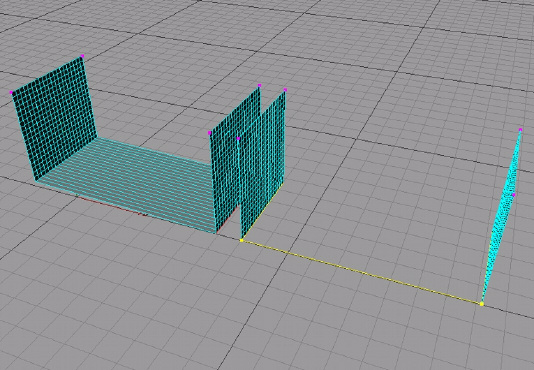 Ahora cogemos la herramienta de puntada y cosido de nuestro menú de estructura y seleccionamos desde la esquina inferior del primer plano a la esquina inferior directamente perpendicular del segundo plano y repetimos la misma operación del tercer al cuarto.