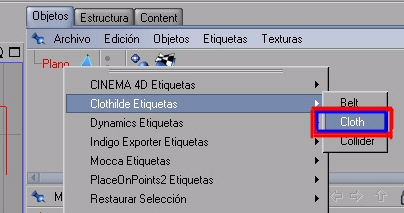 Ya sabéis, botón derecho en el editor de objetos en el plano - Cloth etiquetas - Cloth.