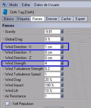 Ahora ya podemos pasar a configurar la fuerza del viento y la dirección.