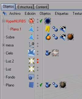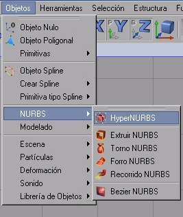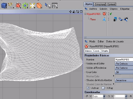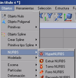 Primero de todo aplicaremos un Hypernurbs a nuestra tela para ello vamos a objetos-nurbs-Hypernurbs.