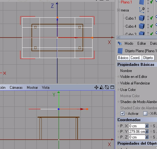 Ahora crearemos un plano igual que hemos hecho anteriormente, pero lo adaptaremos a las medidas de la mesa contando que el plano debe ser un poco más grande que la mesa para hacer el faldón que sobresale.