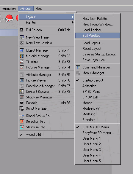 Nos dirigimos al menú window > Layout > edit palets. Se nos abrirá la ventana comands (para encontrar el icono rápidamente podemos teclear la letras b y saltara a la primera función que empiece con b). Cuando lo tengamos localizado lo arrastramos donde mejor nos parezca. No olvidar que si queréis que permanezca donde lo dejáis cuando volvais a abrir la aplicación debéis salvar el Layout. Opción que encontraréis un poco más debajo de dónde desplegamos edit palet. Esto sería window > Layout > save Layout as.