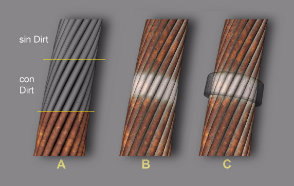 Vemos aquí las diferentes partes en un ejemplo práctico en lo que sería un cable oxidado.