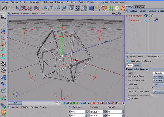 nota: si queremes hacer una escena más simple, sirve perfectamente tomar el tipo = tetraedro, que al tener sólo cuatro caras, será mucho más rápido de modelar que con el icosaedro de 20 caras. El principio del procedimiento es el mismo y, una vez entendido cómo funciona para un tetraedro, lo podremos aplicar usando un octaedro o icosaedro, que son poliedros regulares cuyas caras son todas ellas triángulos equilateros.