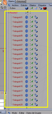 Si vemos que funciona bien, pasaremos a añadir etiquetas Xpresso al resto de los triángulos.