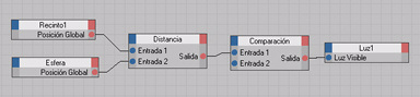 Y en el nodo luz1, pinchamos sobre el cuadrado azul, general > luz visible. Seguidamente unimos salida (del nodo comparación) con luz visible (del nodo luz1).