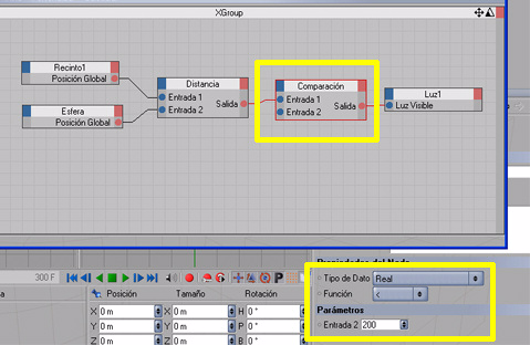 Insertamos otro nodo, botón derecho, nuevo nodo > Xpresso > lógico > comparación.
