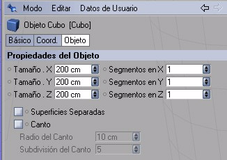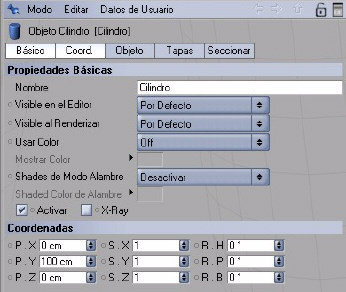 Vamos a ver las opciones que nos ofrece este objeto que aparte de las básicas y de coordenadas tenemos también.