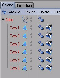 o superficies separadas: si habilitamos esta opción, en el caso de llegar un momento que durante nuestro modelado tengamos que hacer nuestro cubo editable nos separara las caras de nuestro cubo como si se trataran de seis superficies distintas, una por cada cara de nuestro cubo, tal como vemos en la imagen este seria el resultado en caso de haber hecho editable nuestro cubo.
