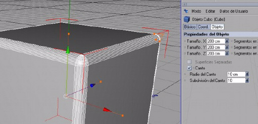 o canto: habilitando esta opción vemos cómo se nos suavizan los cantos de nuestro cubo.