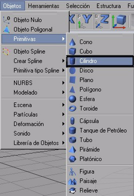El objeto cilindro la encontramos dentro de nuestro menú de objetos > primitivas.