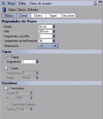 Objecto: o radio: nos permite definir el radio de nuestro cilindro.