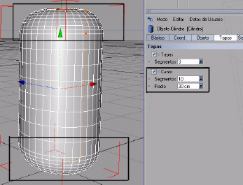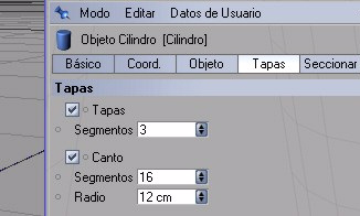 o tapas: nos determina si nuestro cilindro estará tapado en sus extremos o no en esta imagen podemos ver que sucede si desactivamos la casilla de tapas y en el caso de estar tapado también podemos definir en que número de segmentos estará dividida nuestra tapa.