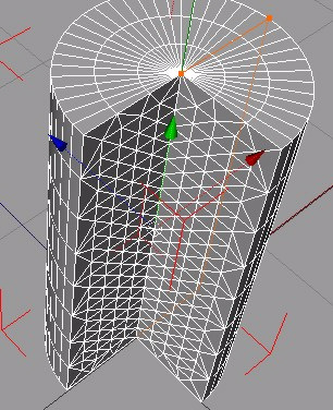 o cuadrícula regular: a como vemos en la imagen superior que donde hemos seccionado nuestro cilindro se han creado las líneas poligonales vasadas en el punto medio del cilindro para completar la parte seccionada, la cuadricula regular nos crea en estas partes del cilindro seccionado los polígonos siguiendo la subdivisión poligonal horizontal y vertical.
