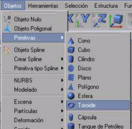 En este apartado de la guía aprenderemos a crear y usar el objeto toroide que la encontramos en objetos > primitivas > toroide.