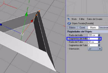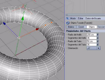 o segmento del tubo: establece la subdivisión poligonal del tubo del toroide en horizontal.