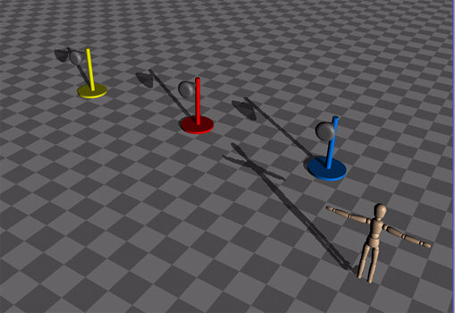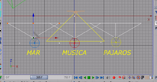 objetivo: en una escena colocaremos tres altavoces, cada uno emitirá un sonido diferente. Una figura se moverá frente a estos tres altavoces. La animación resultante mostrara, ¿cómo la figura, en su desplazamiento, percibe el sonido de cada uno de los altavoces según la distancia que esté a cada uno de ellos.