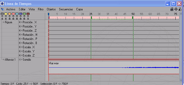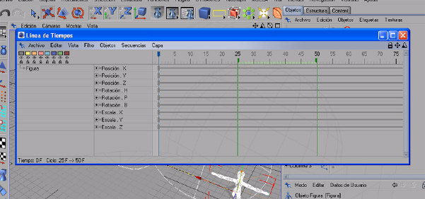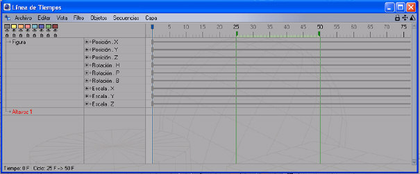 Ahora trabajaremos sobre la ventana de la línea de tiempos, ventana > línea de tiempos como podemos comprobar, sólo vemos las pistas correspondientes al movimiento de la figura.