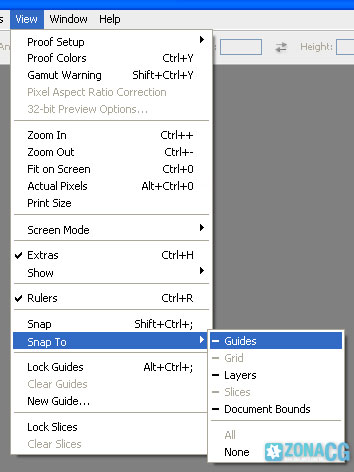 5- Ahora viene la parte interesante. Con la herramienta de selección rectangular, vamos a seleccionar la sección superior izquierda y la vamos a copiar (Control + c). Para que la selección quede perfecta activa la opción Snap todo guides en el menú view: