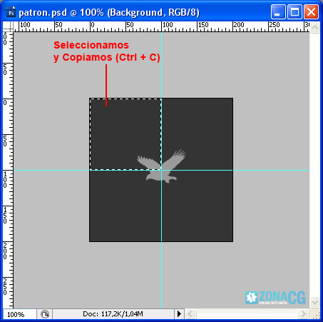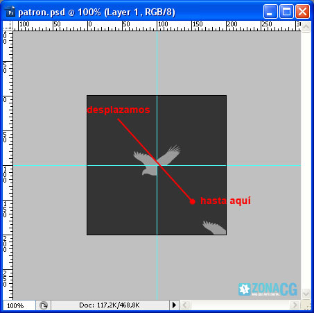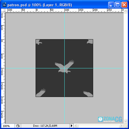 2- Lo que tenemos que hacer es crear la imagen o importarla y colocarla en el centro del lienzo tal cual se ve en la siguiente imagen. Utilizaré esta águila para crear mi patrón: