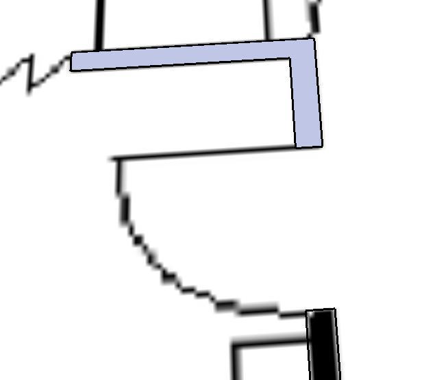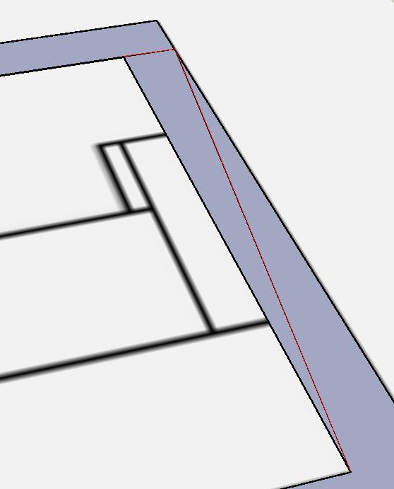 Un truco, si al acabar no te aparece rellenas las paredes exteriores, y estas seguro de que lo has cerrado todo bien, dibuja esto en cualquier tramo (lo he marcado en rojo para que se vea bien) esto hace que se rellene solo. Una vez se rellene, borra estas líneas.