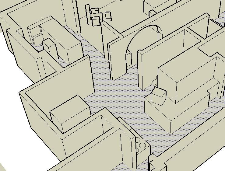 Y luego, pues como las paredes, extrusión hasta alcanzar una altura que veamos real: