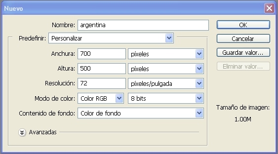 1.- Creamos un nuevo documento de 700 por 500 píxeles, de 300 píxeles, con el color de fondo negro.