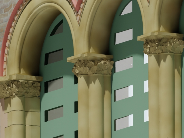 Bien, todo lo tengo ya modelado, colocado y texturizado, pero a la hora de iluminar, creo un ies_sun y un ies_sky para hacer luz general y destellos, siendo la Sun la que crea las sombras, y todo con el motor Mental Ray.