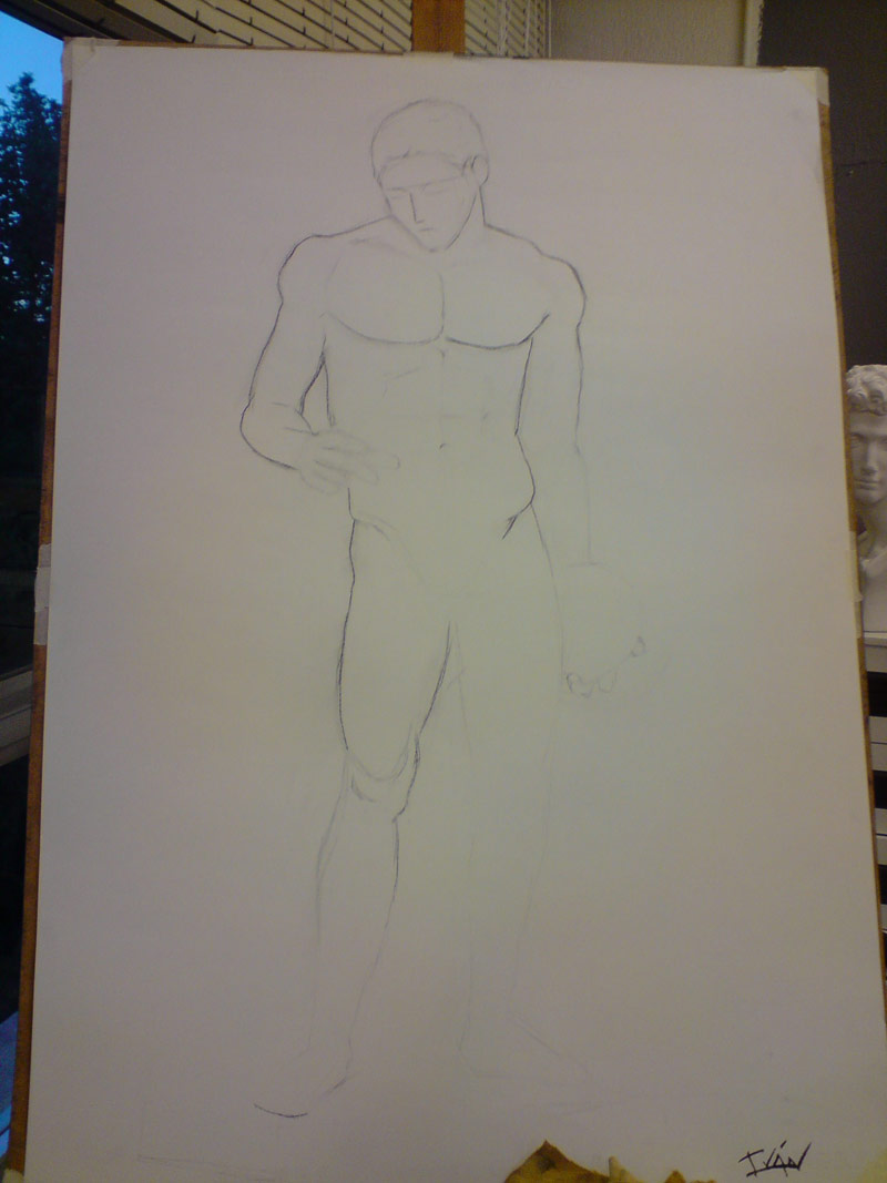 Estudiaría las luces-sombras durante un buen rato antes de empezar, es muy importante saber dónde están los puntos más luminosos, puedes apreciarlo fácilmente entrecerrando ligeramente los ojos.