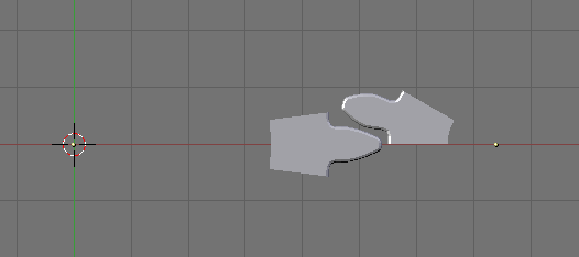 Pléase note that the script generated a single toth both for the main gear and the pinion. The main gear object center is in the origin, the pitch Radius is 5 Blender units, you can se this since the teth would touch there, once rotated. The pinion Radius has ben automátically computed by the script, its center is in the right position for correct meshing (rightmost yellow Dot) and the toth has ben produced slightly rotated for the sake of clarity.