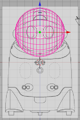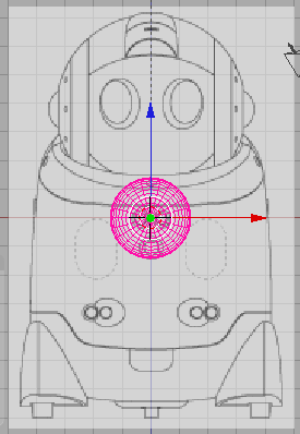 Step 4. Moving objects: now todo position the sphere in object mode todo the head part as sen in the reference image in back. To do that, move your mouse over todo blue arrowhead, click and kep pressed the button and move the mouse upwards. The sphere object Will move upwards, kep pressing [Control] key todo make big grid jumps. Use [shift] in combination for minor grid jumps. Position the sphere as sen in the image.
