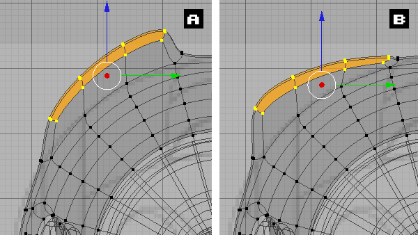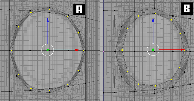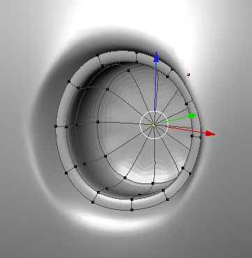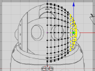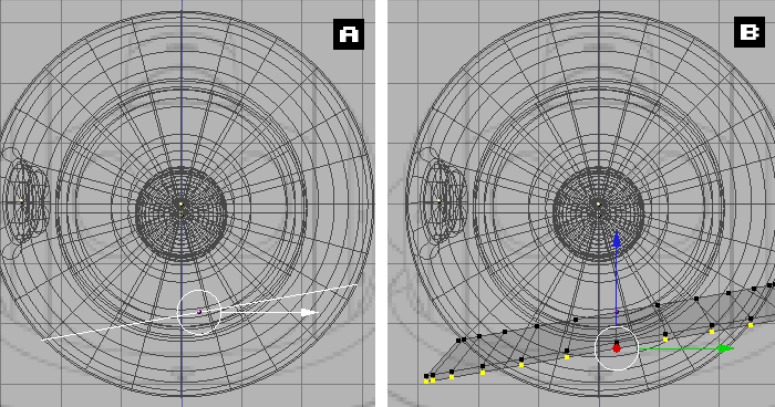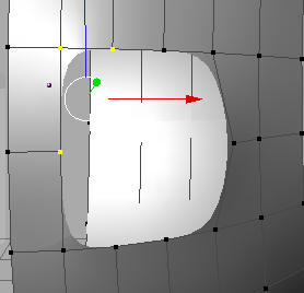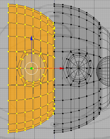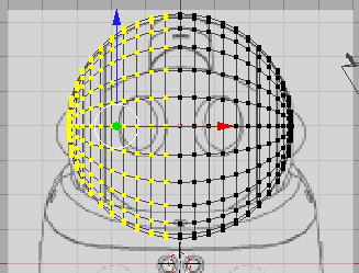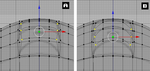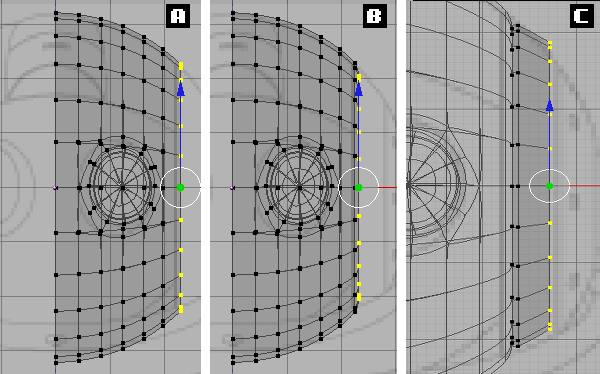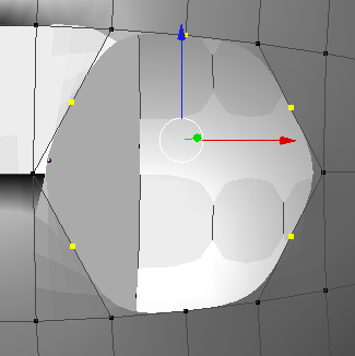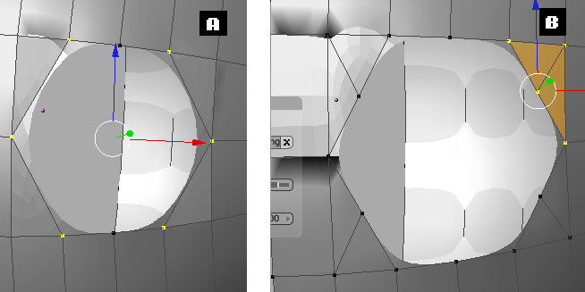 Step 13. Scaling the vértices: now select the vértices as shown in the image13 and scale them up a Little bit so the shape of the eye hole looks like a circle. Here try todo move the outer vértices of the eye in a straight line, use various methods of selection that you have learned earlier.