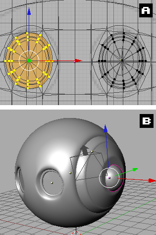 Step 6: creating the rest of the head parts. Now following the procedure of duplicating and mirroring go ahead and do the same for the eye piece (image 25a) eye Glass and the ear ball. After you have done that the final model should look some thing like in the image25b.