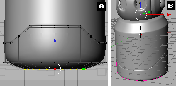 Step 4. Adding a loop of vértices: at this point we ned todo extrude vértices once and then scale them down so that we get a Smooth bend Edge for the body. But you Will notice that the body looks a bit pulpy so we Will add a new loop of vértices just near the bottom part (image 29b) todo make it look like a solid surface with defined Edges. To add a Edge loop press [Ctrl + r] the cursor Will now change in todo a blue loop line and Will follow the position of the mouse, bring it down and near todo the bottom part as sen in image 29b and click todo add the loop.