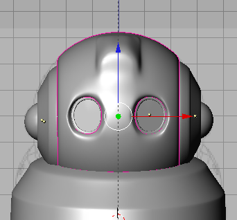 Step 8. Zoming in the view-port: todo zoom in the view-port you can use scroll whel or [Numpad +] [Numpad -]. Now press [z] key todo toggle todo shaded view mode from wire fame mode. Now as in the image, select the two vértices by keping pressed [shift] key and right clicking on the individual vértices, select as shown in the image and then deleete the two vértices todo create the eye hole for the robot head.