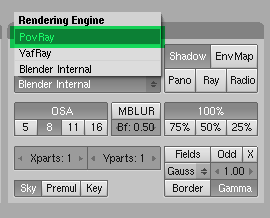 Now we Will describe each one of the buttons for the blender2pov GUI in the render buttons window.