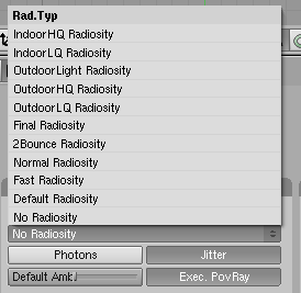 no radiosity: when selecting this option blend2pov doesnt calculate radiosity.
