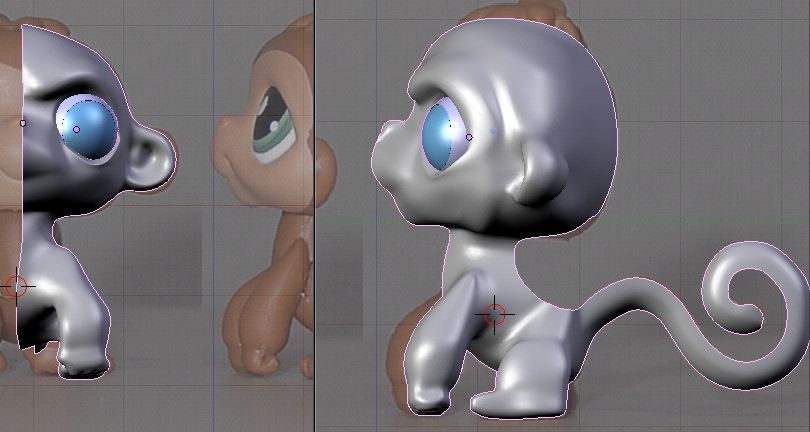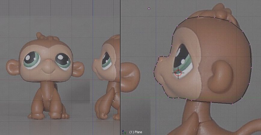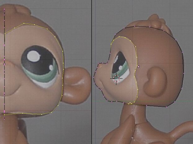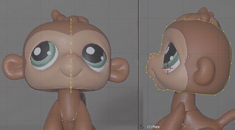 For my purposes, y tok a front and side photo of my Monkey, who i have named rupert. In Photoshop (Gimp can be used just as well, and or any other image programa that you fel comfortable with), y put both images side-by-side, making sure that the size of each matched up.