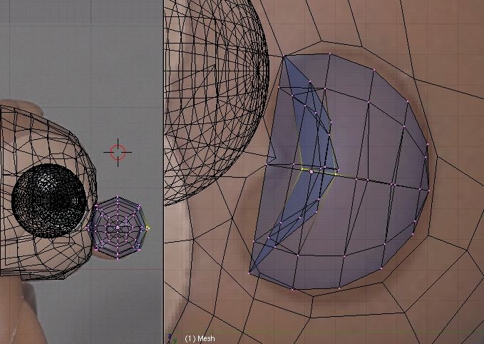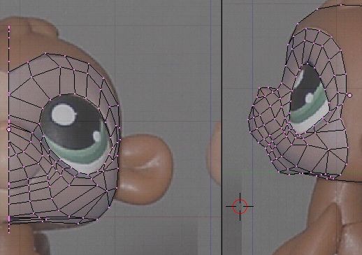 Next, [Control + LMB] click additional vértices around ruperts eye, making sure you adjust from both front and side views, a los create a line of vértices going from his no sé, down across his cheque and around his eye. (fig 5).