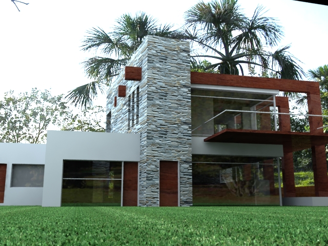 Las interiores sin usar Vray lights, y que solo sean iluminadas por el sol (Target Direct) me quedan manchaditas, en el displacement del pasto siempre me queda marcadito como mal mapeado y eso que le doy vueltas y vueltas al asunto.