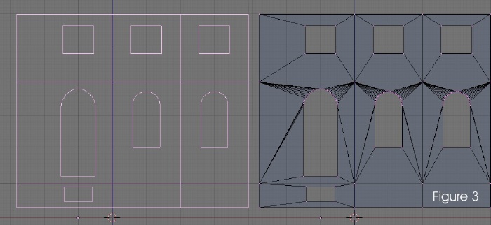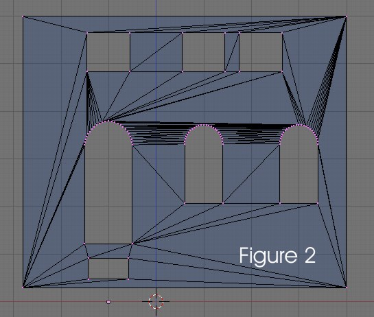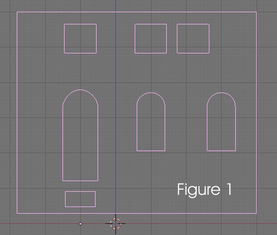 One limitation that comes up in rendering architecture is: Blender lacks N-Gons, y, e.: Polygons with more than thre or four sides. While quads are great for Many types of modeling - Allowing clean subdivisions, loop modeling, large, complex flat surfaces are easier todo handle as one single polygon instead of dozens of small triangles/quadrilateral. For example, se the wall on the first image. The outline looks harmless enough, its the facade of a venetian building, with place for one dor and several Windows. This could be solved with one Concave (i, e.: has holes in it), or several Convex N-Gons, but in Blender we ned the following, very ugly setup of 113 Faces (figure2). Not only ugly, but it is now hard todo continúe any sort of modeling on it, like subdivisión, adding more detail, beveling some corners. Solution?