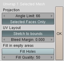 The default settings are mostly god. One of the settings that concern us here is the projection angle limit. This specifies the angle above which two neighboring Faces Will be broken up into sepárate pieces on the UV map. If the planks are simple 6 sided rectangular prisms (i, stretched cubes), then the default 66 Degrees is enough todo break up the 90 degre angles between Faces. Lets say however that you have a single bevel on the model. (this is generally god modeling practice.) here the Faces are at 45 degre angles todo each other.