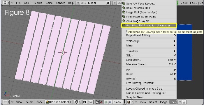 Getting the model ready. Model the planks, and make sure they are one Mesh object. If not, select them all, and alt-j todo join them. Press for use the menú todo change todo UV face select mode. Select about ten planks. In another window, open the UV/Image Editor. In the image menú, load the texture. In the UVS menú select archimap UV projection Unwrapper.