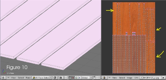 note: all of this could a los be done by hand, g, the UV map on the left of image 11 could be manually stretched todo cover the whole image. The reason for all this experimentation on the number of planks todo texture is todo automate the process with the above mentioned script. If you have a lot of objects, this type of quik texturing can be done in a few seconds, and Will spare you potentially hours of manual UV map creation.