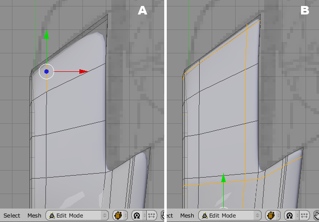 Fig 14a: corners initially. 14b corners After adding Edge Loops.